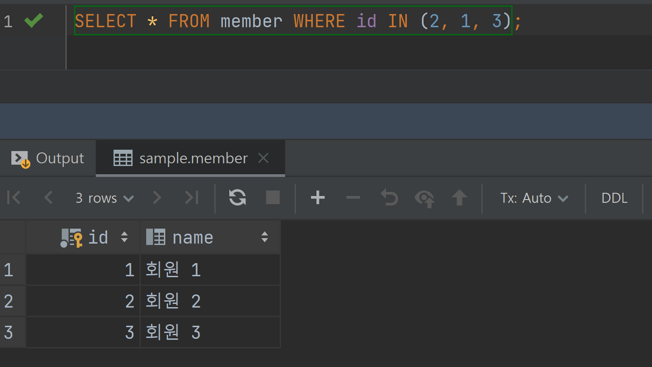SELECT * FROM member WHERE id IN (2, 1, 3);