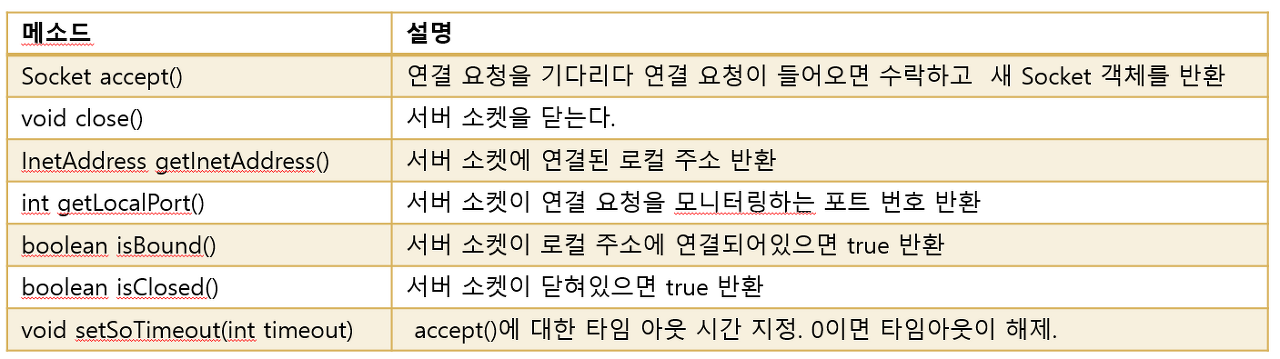 - 서버 소켓, 클라이언트 소켓으로 구성