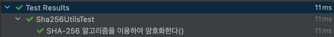 fun `SHA-256 알고리즘을 이용하여 암호화한다`() {