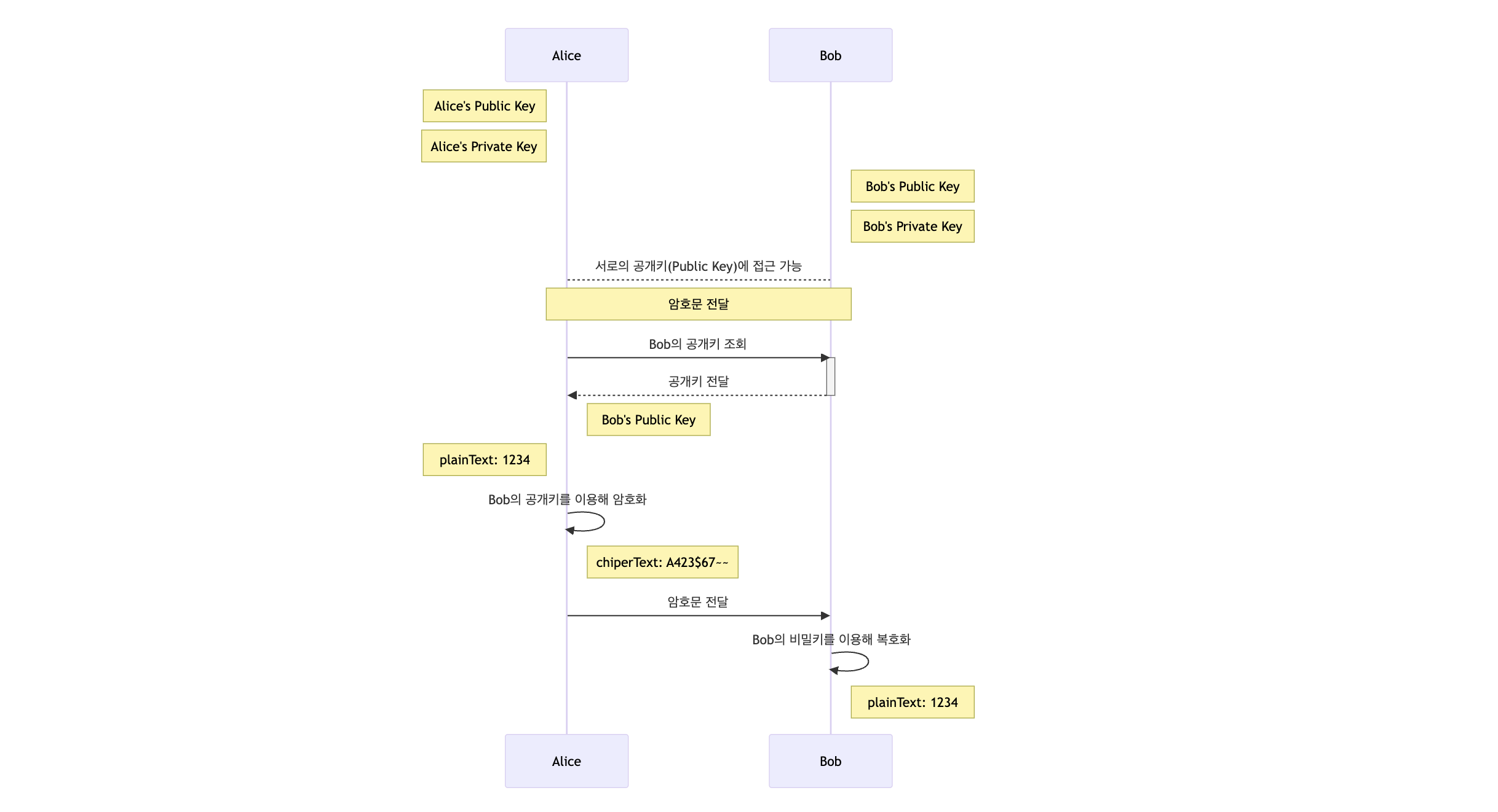 - B는 암호문을 받고, 자신의 비밀키로 복호화함