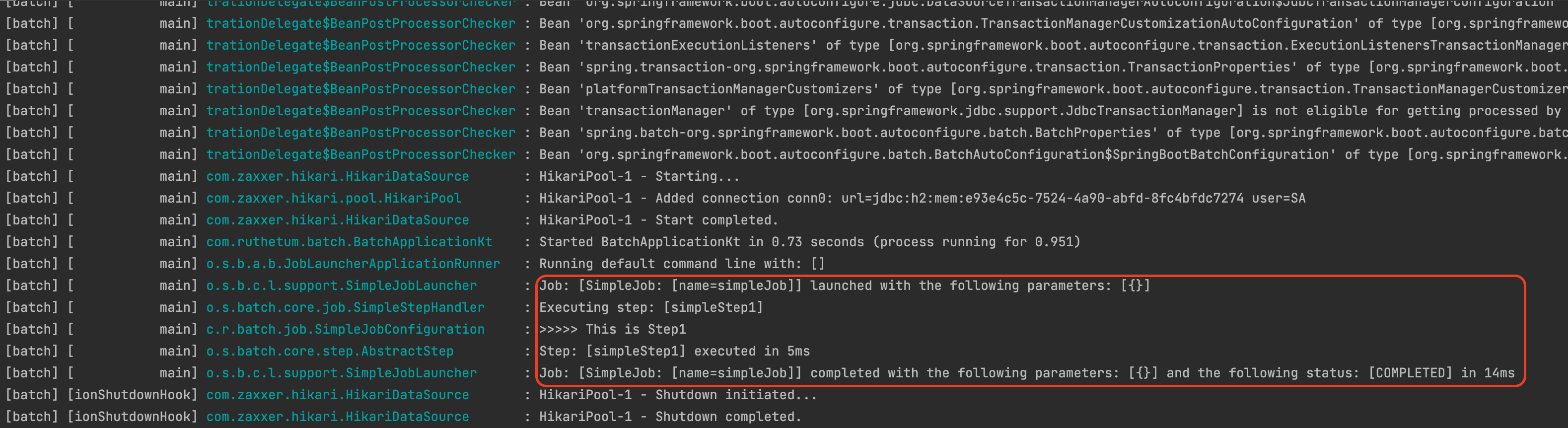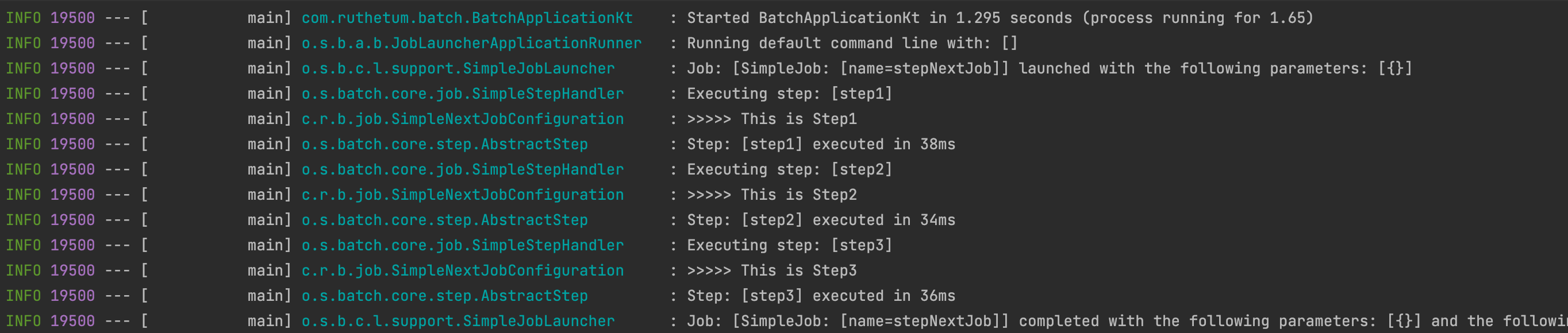 정상적으로 Job과 Step이 실행됨을 확인할 수 있습니다.