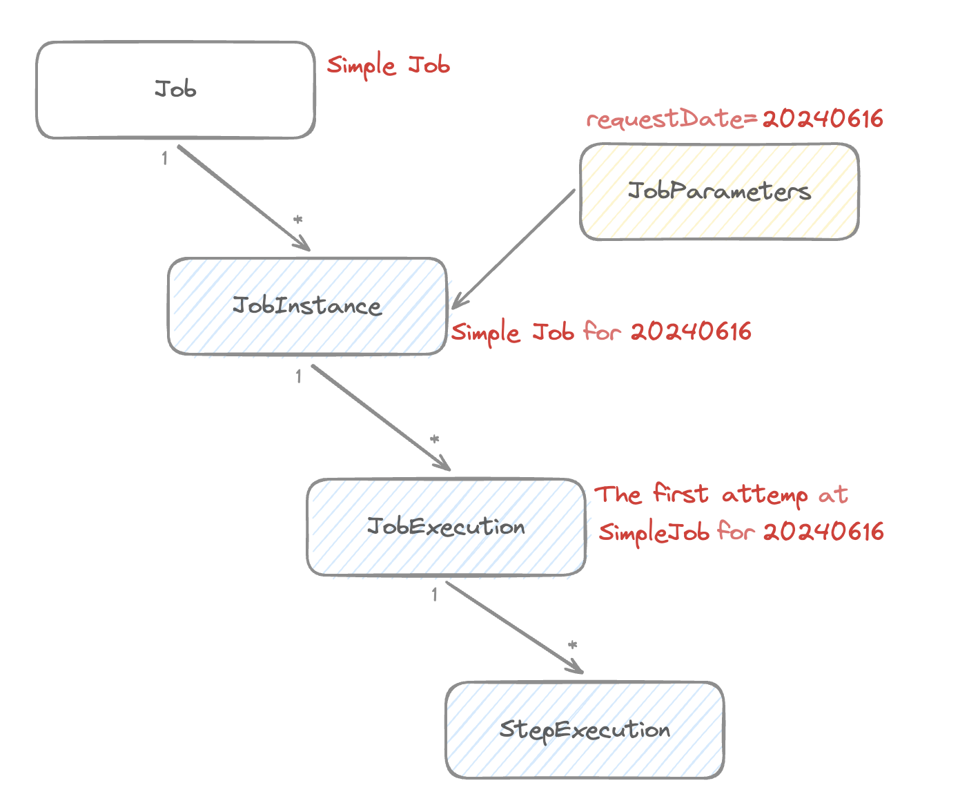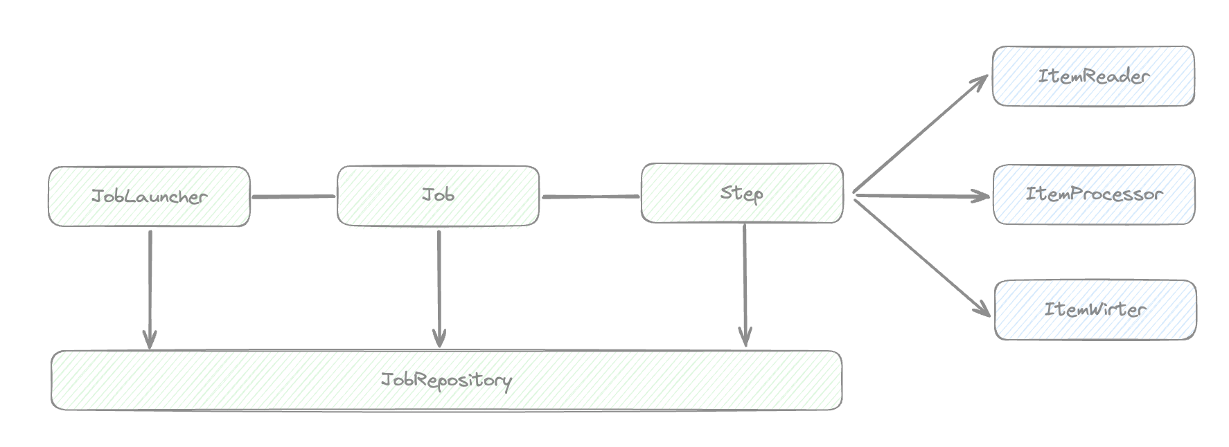 간단한 Job을 선언하는 방법을 확인하기 전에 기본적인 Spring Batch의 용어들에 대해 간단하게 설명드리겠습니다.